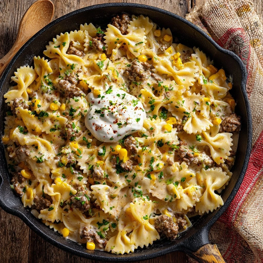 It was a Friday night, the kind of night when the fridge feels like a graveyard and the pantry looks like a sad museum. I stared at the single package of ground beef, a lone onion, and a box of farfalle that had been sitting there since last month’s Thanksgiving. The kitchen lights flickered, the oven was on standby, and the air smelled faintly of burnt popcorn from a forgotten microwave session. I laughed, because I knew I was about to turn a culinary mishap into a masterpiece. I was craving something creamy, something comforting, but also bold enough to impress my friends who always say, “I dare you to taste this and not go back for seconds.”