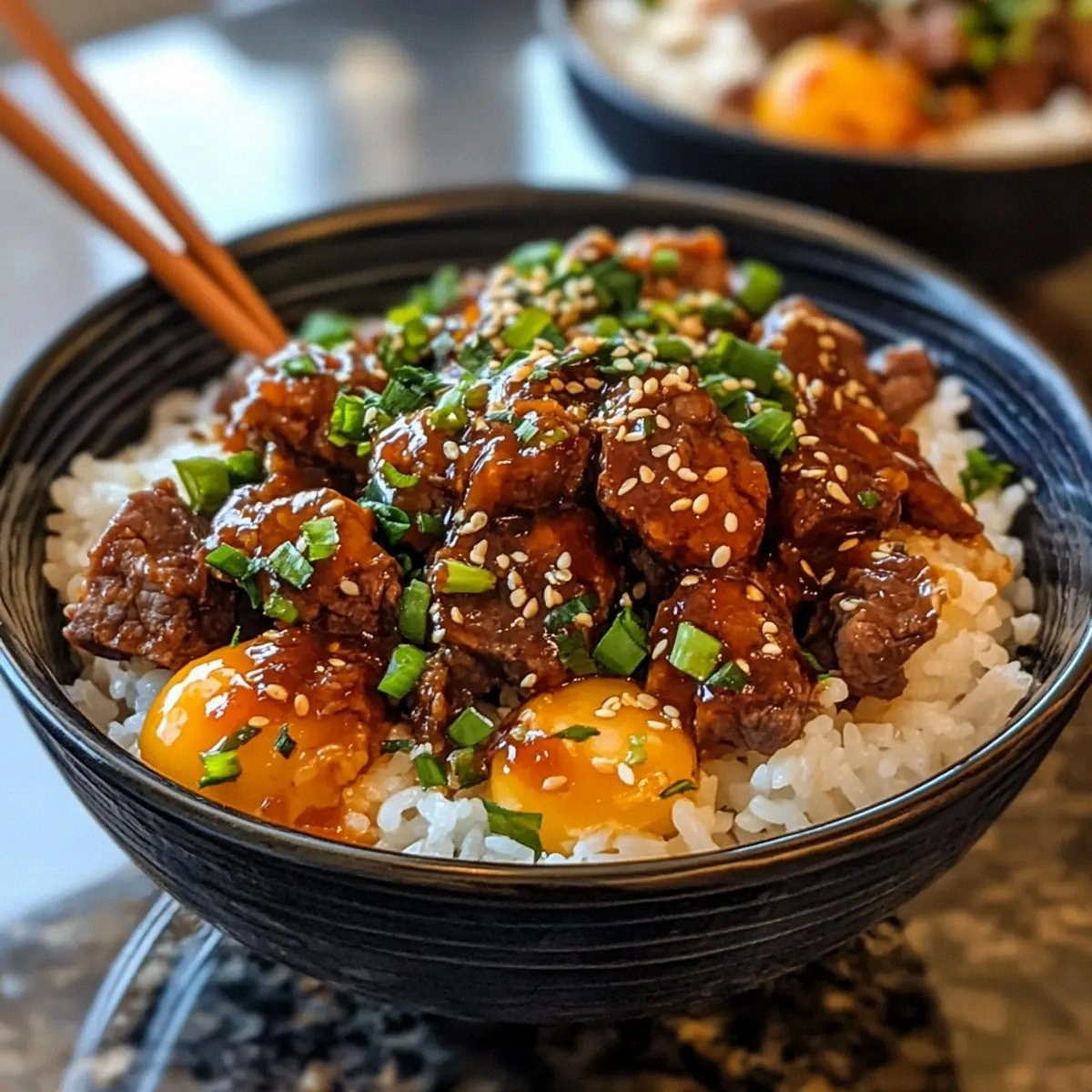- Step 8: Plate and Serve. Divide the hot rice among four bowls, then ladle the beef mixture over the rice. Garnish with the remaining green onion slices and a few extra sesame seeds for a decorative touch. Serve immediately while the dish is steaming hot, and watch as the steam rises like a fragrant cloud of Korean barbecue.