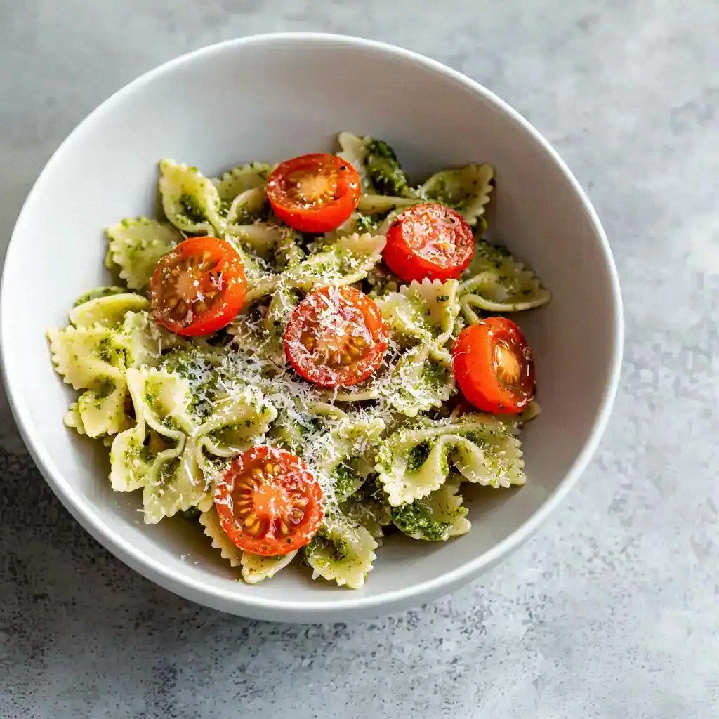 What makes this recipe stand out? It’s a blend of simplicity and sophistication that keeps the ingredients honest while delivering a flavor punch that’s hard to beat. The pesto is homemade, so you get that fresh, green kick that bottled versions can’t match. The cherry tomatoes add a juicy contrast that cuts through the richness of the sauce. And the finish? A generous dusting of Parmesan that gives the dish a savory, nutty finish that’s impossible to ignore.