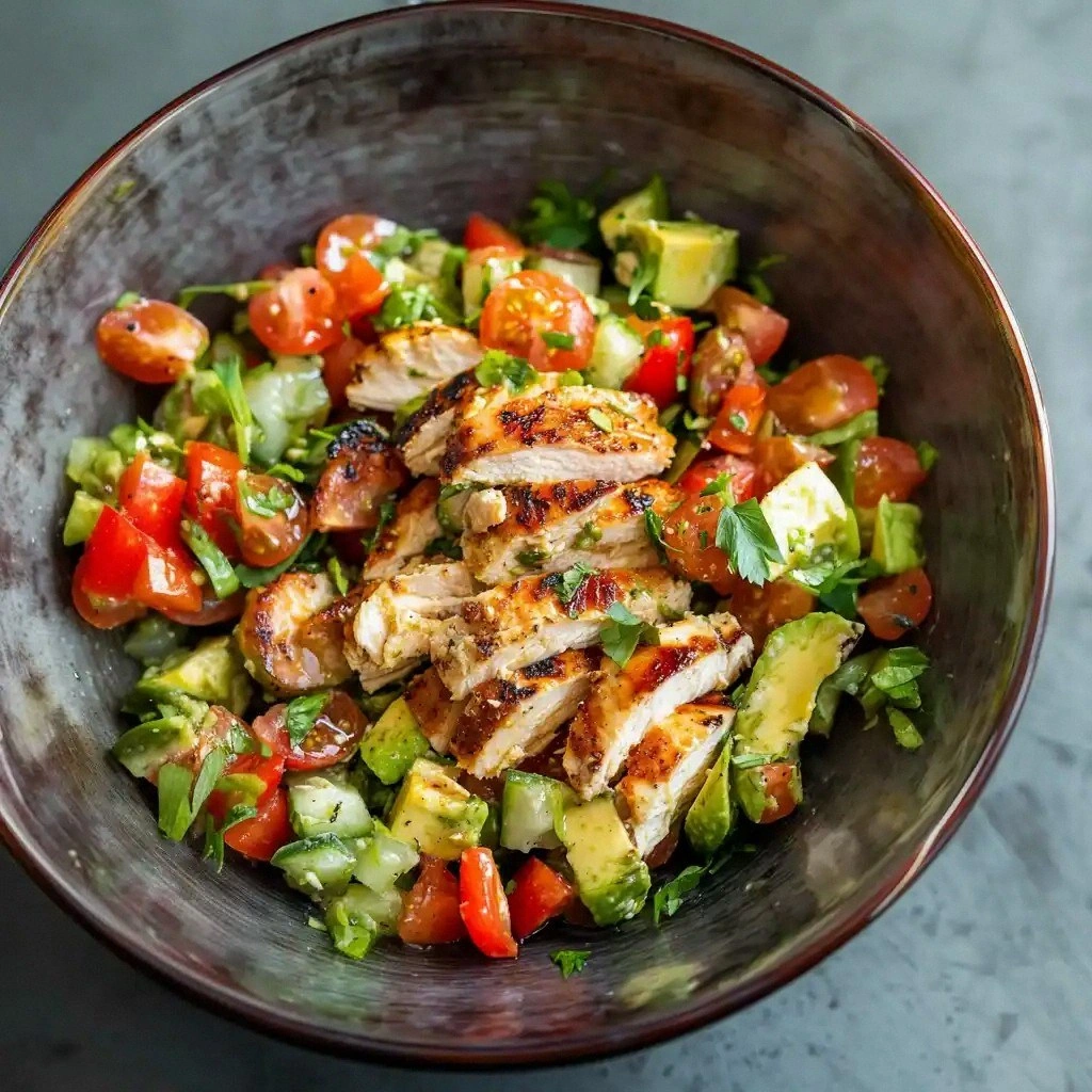 Chicken: Cooked chicken breast provides a lean, protein-packed core that balances the fats from the avocado. Sautéing the chicken until it’s just golden helps lock in juices and adds a subtle caramelized note. Skipping this step results in dry, bland meat that can ruin the salad’s harmony. If you prefer a different protein, grilled shrimp or tofu can be used as a one‑to‑one substitution.